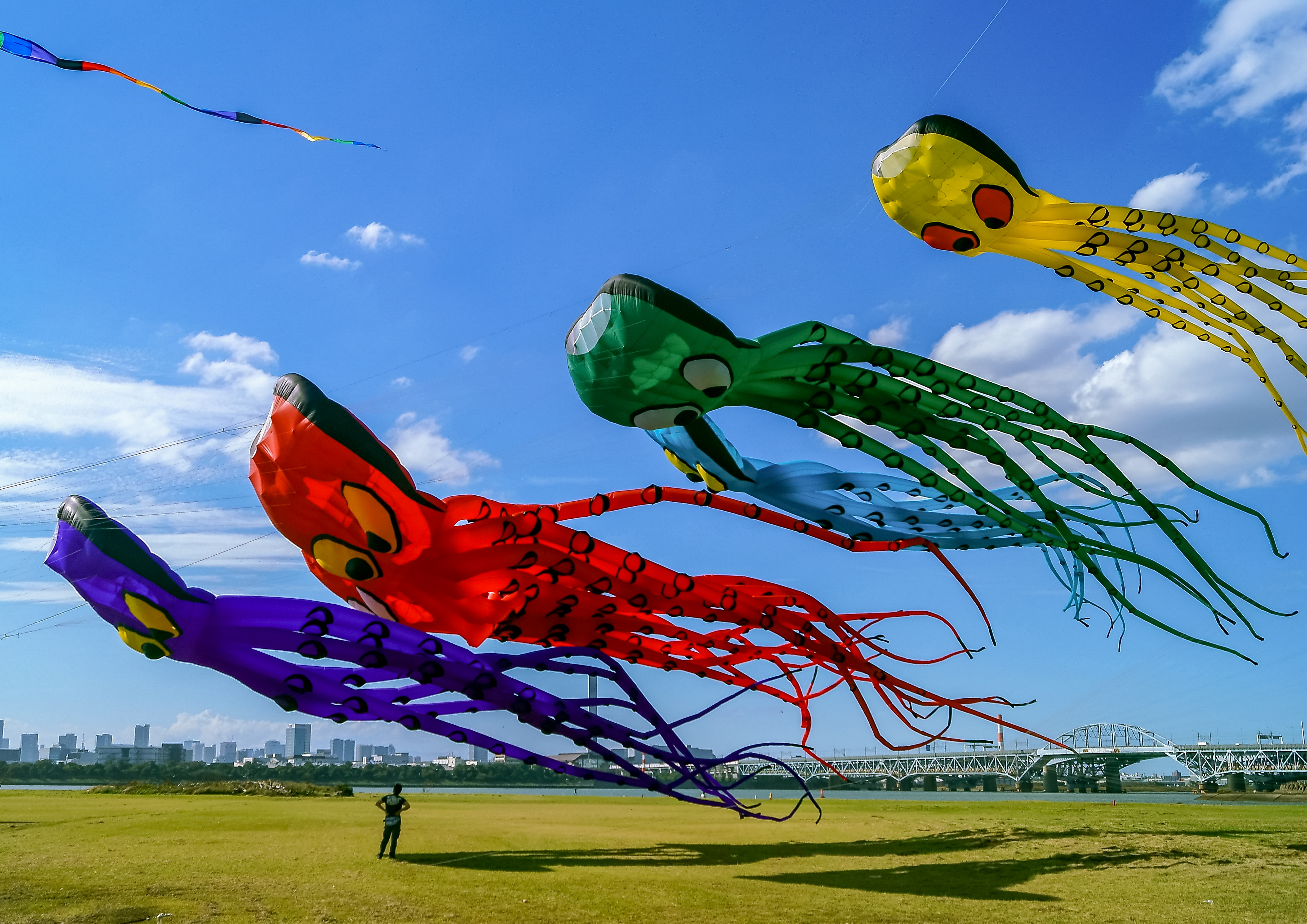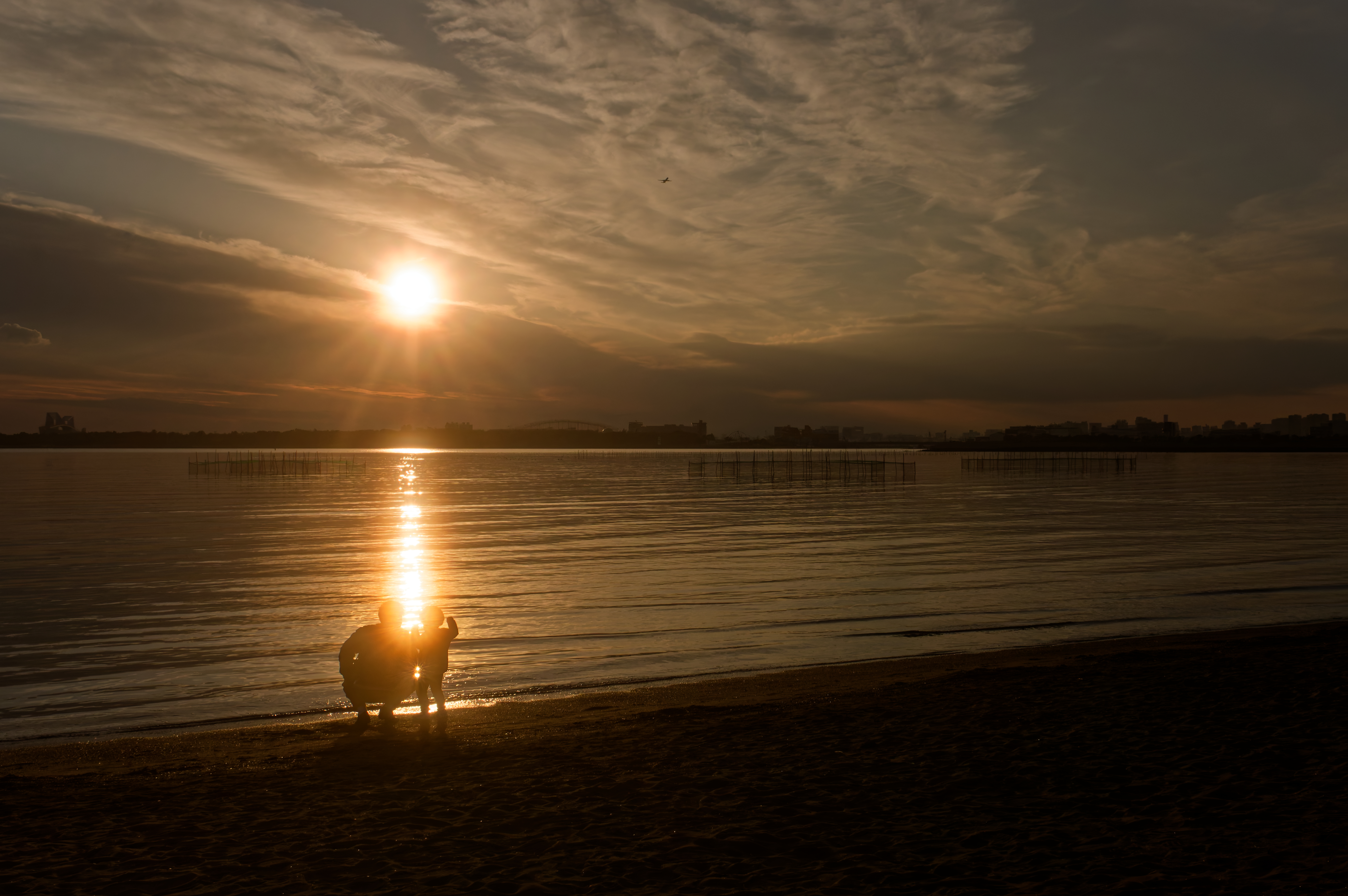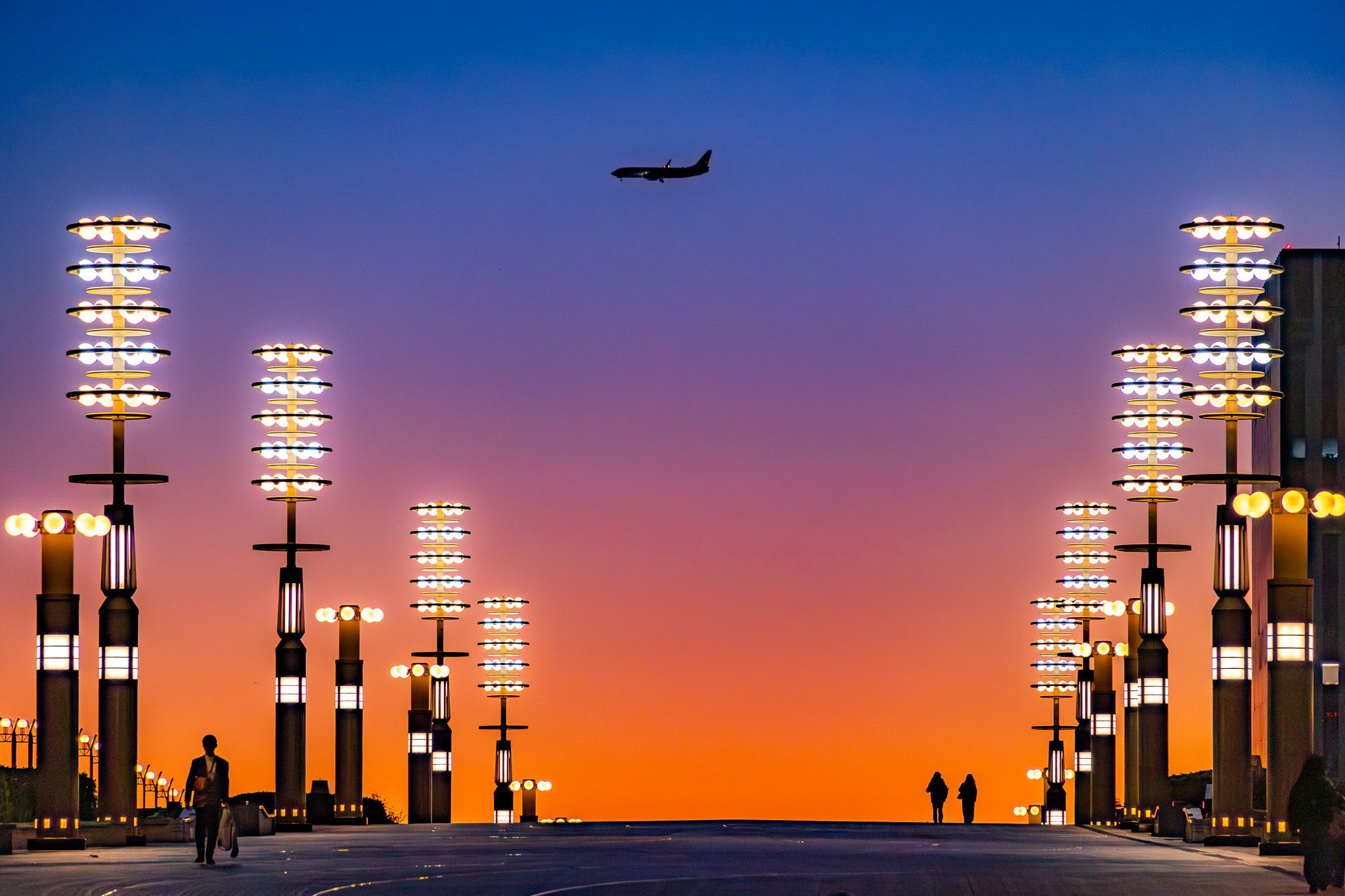 橋の上のシルエットたち