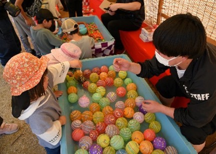 海の森で採取された剪定木や木の実を使ったクラフト体験、縁日、お絵描きランタン体験、