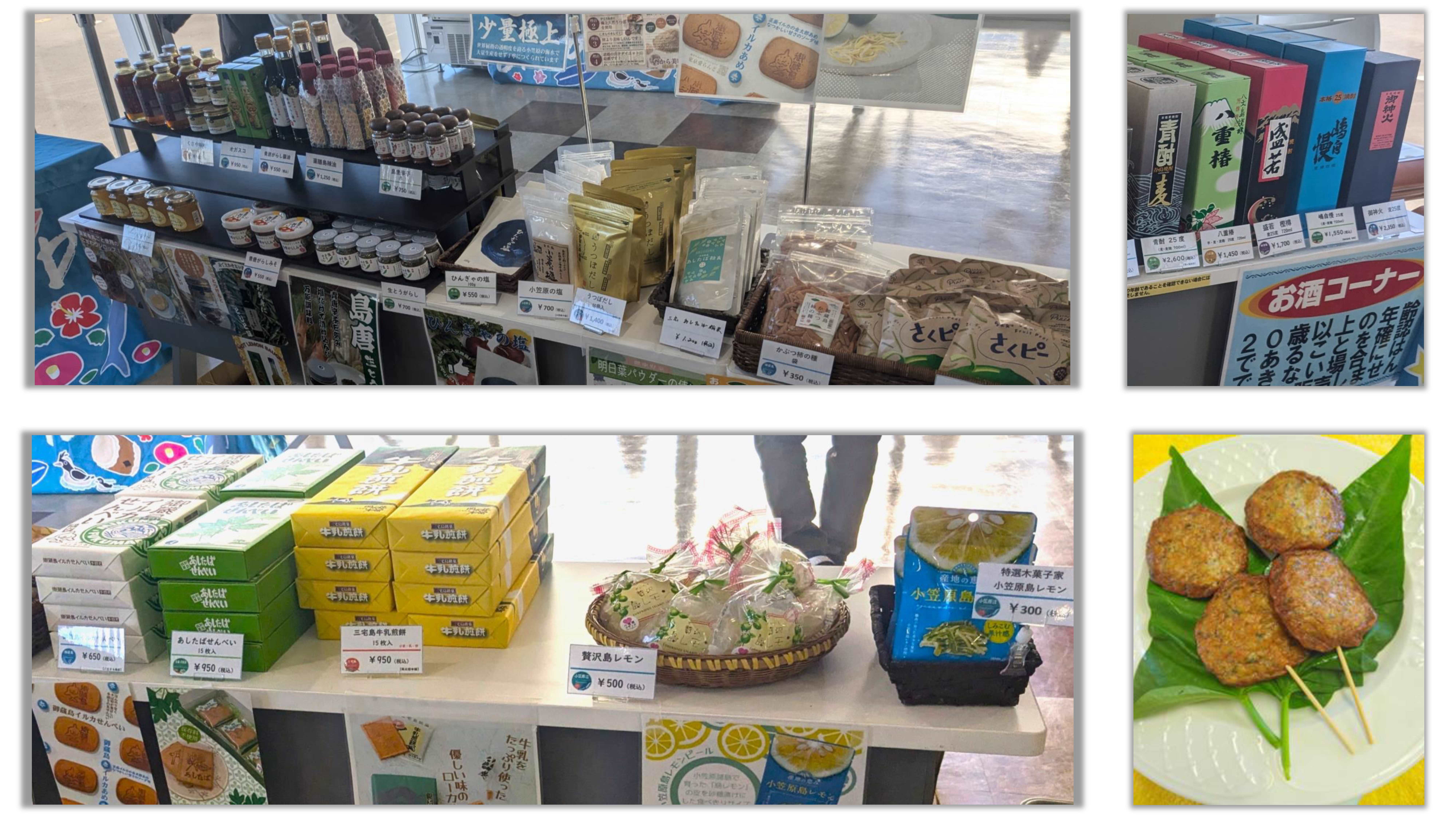 美味しい島酒や、海産物、明日葉、椿油、天然塩など伊豆・小笠原諸島の魅力溢れる特産品を揃えて販売します。