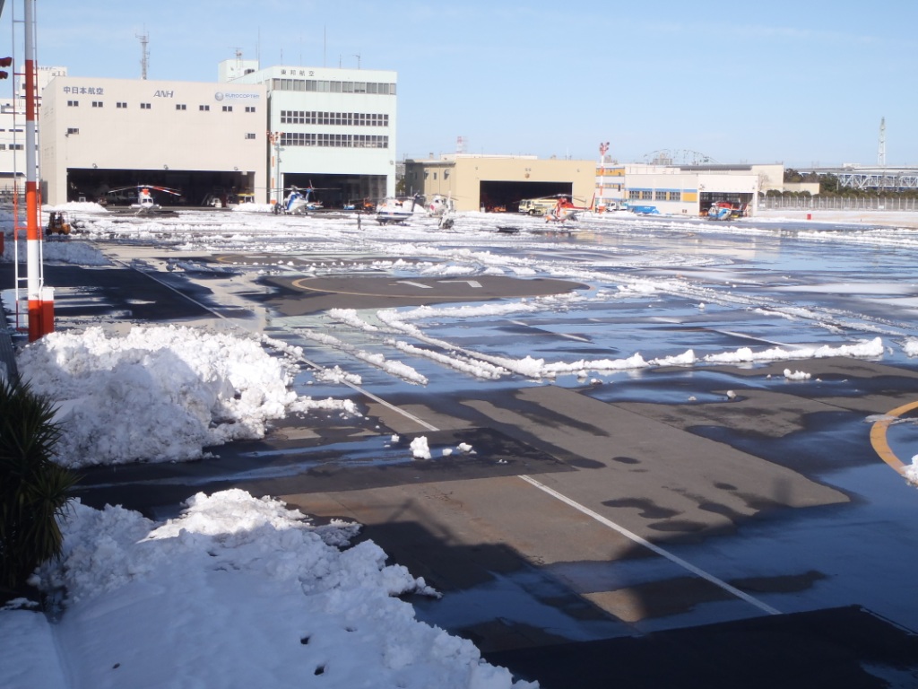 東京都心は、2月8日(土)午後11時積雪27㎝を記録。1994年2月以来20年ぶりの大雪となった。東京ヘリポートでは午後4時時点で空港内の積雪が約15㎝となった。
