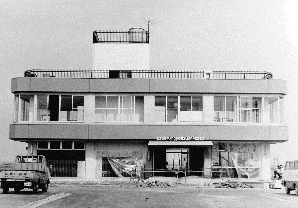 運輸省(現国土交通省)東京航空局江東空港出張所(写真左手前)と東京都東京ヘリポート管理事務所(写真右奥)