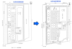 拡張工事前と工事後の空港全景(左:拡張前、右:拡張後)