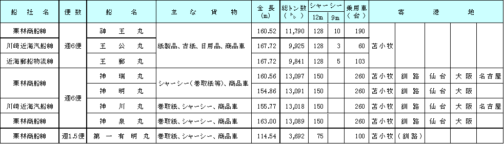 RORO船の荷役は従来の荷役形態と比べ、シャーシーに貨物を積んだまま牽引して積み降ろしをするため、貨物の荷捌きや一時保管のための上屋の必要性が低下する一方、トレーラーがふ頭をスムーズに走行するための広いヤードが必要となっています。